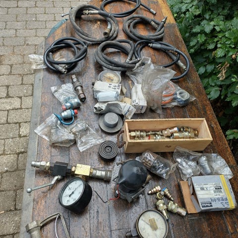 Poclain hjulmotorer, nogle med hydraulisk de-aktiveret parkeringsbremse som kan fjernes.