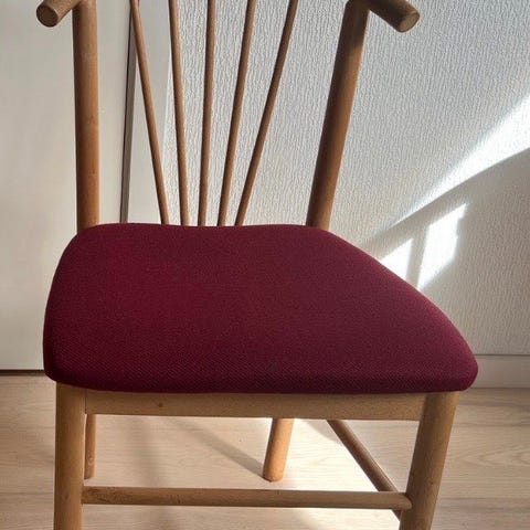 Minimum pris er 125 pr stol. Jeg har lagt flere stole på til jer der har givet bud der er nok 30 stole. To senge af wegner og lænestolen klæder på fotoet er der to sf og to i stof lænestolene trænger til istandsættelse ligeledes sengene er gået i flettet.