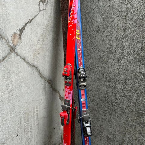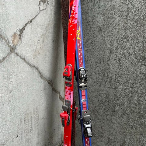 2 par ski uden stave. Det ene par måler 180 cm og det andet 190 cm
