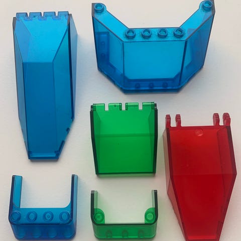 LEGO vinduer til fly i farven Light Bluish Gray. Alle inkl lyseblåt glas 🩵