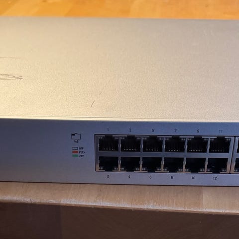 Næsten ny Ubiquiti USW-Pro-Max-16. Købt 16. juli for 2069 kr. Fortsat garanti. Sælges grundet opgradering. Kan evt. sælges med moms faktura. Se mere på https://eu.store.ui.com/eu/en/category/all-switching/products/usw-pro-max-16