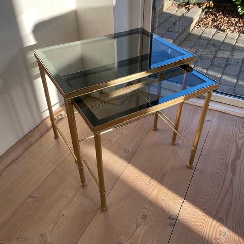 Smukt sæt indskudsborde i messinglook og glas – 3 stk.