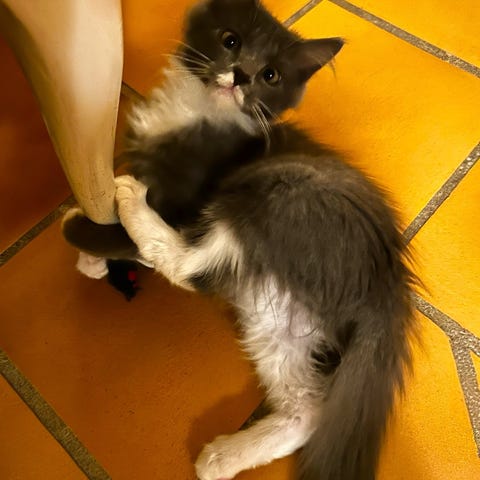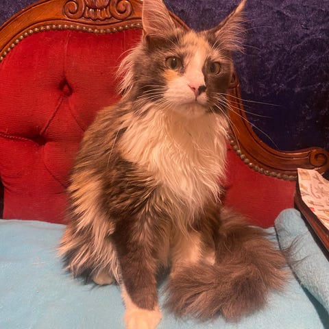 Smukke Olivia leder efter sin nye familie. Hun er en utrolig kælen og kærlig lille killing, som allerhelst vil være tæt på dig hele tiden. Olivia elsker at blive nusset, putte og være midt i al opmærksomheden. Hun er halv Maine Coon i smukke hvide og grå farver. Hun er klar til at flytte hjemmefra d. 26. december. Hun har fået både orme- og loppekur og får lidt mad med til de første par dage.