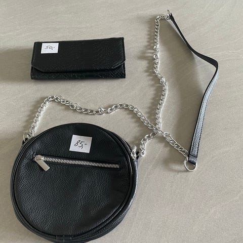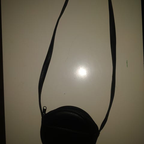 OH! Superflot sort rundtaske 18 cm rund, kan bæres uden rem, da der er lille håndtag mit på taske til at holde den med. guldkæde i første del af remmen over skulder justerer bare længde.