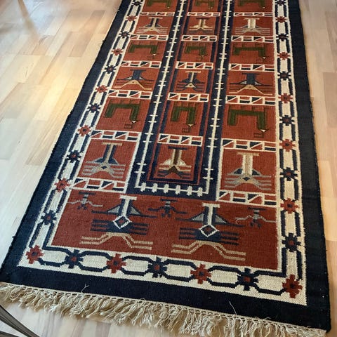 Sælger tæppe til gangen. Det er brugt, men i god stand og klar til brug. Perfekt til at skabe hygge og beskytte gulvet i entré eller gang.