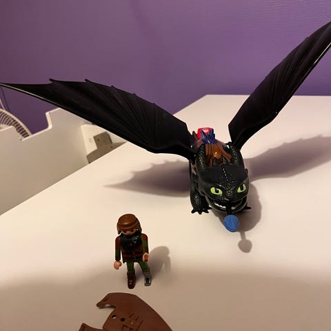 Tandløs figur samt en flamme der kan skydes afsted fra munden