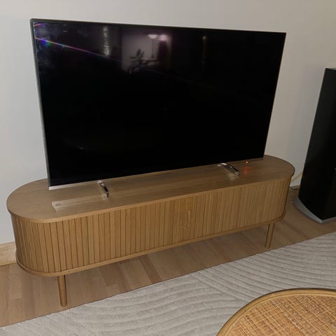 Jeg sælger mit tv bord, da jeg ønsker at skifte til mørkere træ herhjemme.