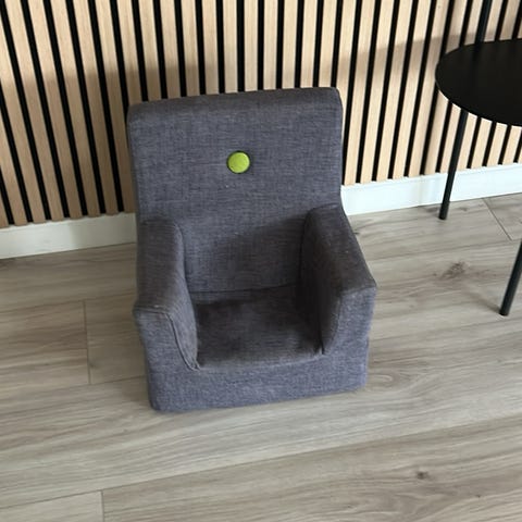 “KK Kids Chair er en lænestol og et legemodul samlet i ét som en del af KKs funktionelle møbelunivers. Stolen er både blød og robust, og den er nem at løfte, skubbe og tumle med. Det gør den oplagt som multimøbel og flytbar siddeplads i hjemmets forskellige rum, fx når der laves mad i køkkenet, er filmaften i stuen eller legeaftaler på værelset. Med dens unikke og klassiske design kan den passe ind i mange indretninger og give barnets sin egen plads ved sofabordet.”