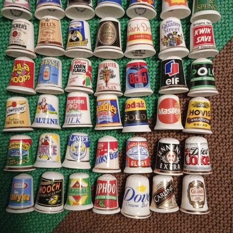 Firmaet Birchcroft fremstillede på et tidspunkt porcelænsfingerbøl i form af små bøger. Her er det A Christmas Carol af Dickens. Fingerbøllet er ca. 2,6 cm i højden, og det er stemplet indeni med firmaets mærke og Made in England