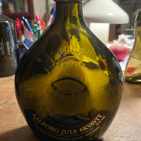 Flot og velholdt Aalborg Jule Akvavit 2022. Fra 40 års jubilæum. Med original æske. Flasken er tom.
