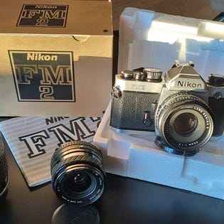 Nikon D610, FM2 og FA samt forskellige objektiver m.m. alle i god stand og fungerende.
