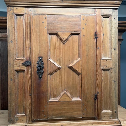 Tobaksskab med hylde og skuffe og nøgle