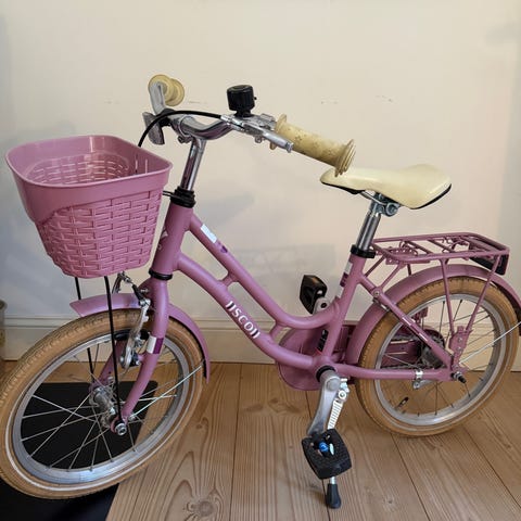 Mosquito børnecykel med 16 tommer hjul i hvid farve. Cyklen har stel og skærme, kædeskærm og håndbremser, egnet til børn.