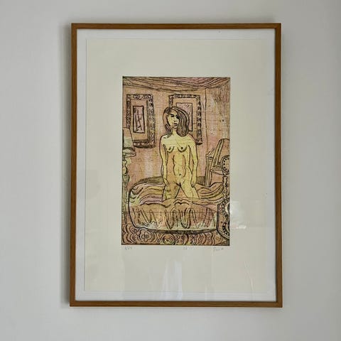 Billede, Tal R, b: 60 h: 80, Støttebillede af Tal R – 2021 Tal R´s vildtvoksende kunst består af tegninger, malerier, skulpturer, grafik og installationer – og af stedsspecifik kunst i bl.a. Operaen i København, Frederik 8.s Palæ på Amalienborg og Psykiatrien, Aarhus Universitetshospital. Fælles for de mange værker er et stærkt fortællende element med alverdens referencer til personlige relationer, samtidens visuelle kultur og forbilleder fra kultur- og kunsthistorien. Værkerne vidner om en undersøgende tilgang til verden, som ofte kommer til udtryk i serier af værker, hvor Tal R med vedholdende nysgerrighed udforsker et motiv, en form, et tema eller lignende. Årets støttebillede har titlen ‘The Yellow’ og er malet i 2005. (plakatens mål: 60 X 80, indrammet i sort ramme) Købspris 5.000 kr.