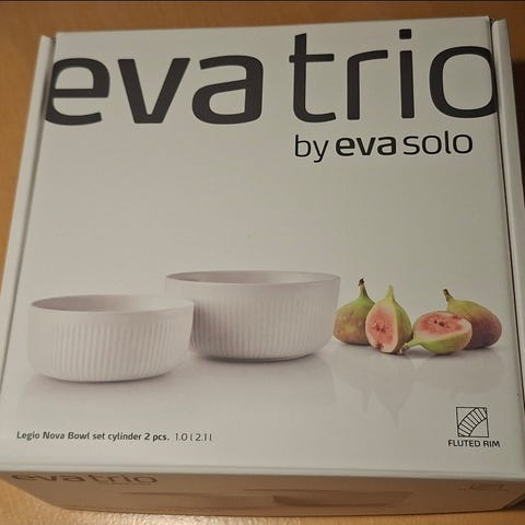 Jeg sælger Eva Solo Legio Nova Skålesæt Cylinder med 2 stk. porcelænsskåle i størrelserne 1,0 liter og 2,1 liter.