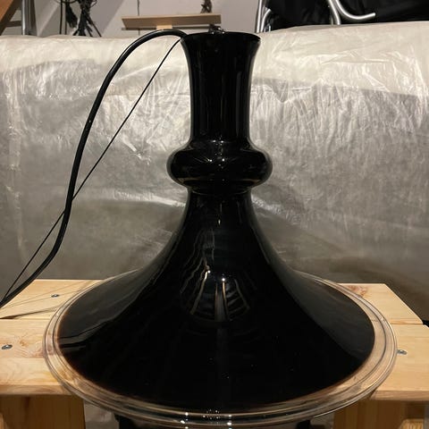 Har været brugt som spisebordslampe. Den giver et smukt lys og har ikke den eneste skramme.