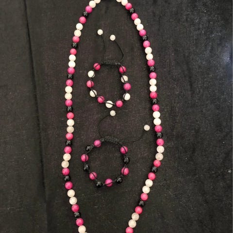 Håndlavet Smykkesæt med Halskæde og Armbånd i Brun med Perler