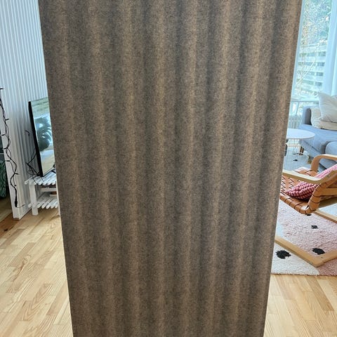 Skærmvæggen er designet til og skabe opdelte rum i kontormiljøer eller andre indendørs områder. Materialet er lydabsorberende, hvilket bidrager til bedre akustik og privatliv.