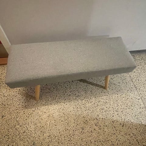 Bænk ( puf ) med opbevaring. Helt ny. Jeg sælger pga. mangler plads. Jeg fik den lavet for 2500 kr. så den passede til min sofa, men den var for stor til mit værelse, og jeg brugte den aldrig. Størrelse dyb 52 bredde 95 højde 42 cm