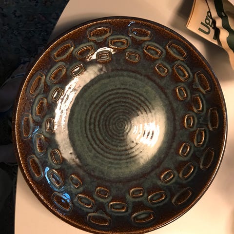 Fad/skål fra Søholm Keramik Bornholm. Fadet er designet af Einar Johansen, nr 3335 og er dekoreret i en dyb blå farve.