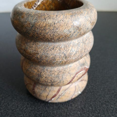 Ferm Living dekorationsskål lavet af marmor. Den er nærmest som ny, pånær mærket under(der er et billede af dette) Meget smuk, og er flot hævet pga. de to fødder.