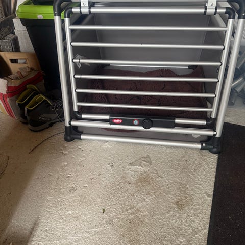 Sort metal hundebur med dimensionerne 90 cm i længden, 64 cm i bredden og 82 cm i højden. Buret har gitterdøre og sider, som sikrer god ventilation og udsyn for hunden. Velegnet til transport eller opbevaring af hunde i størrelsen 25-40 kg. Kun brugt et par måneder grundet nyt bilkøb hvor den ikke passer til.