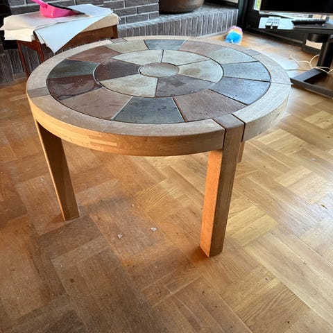 Massivt eg med smukt skiffer, glaserede klinker samt kobber mm