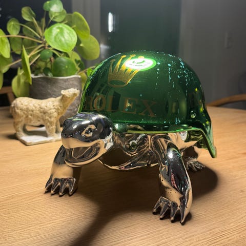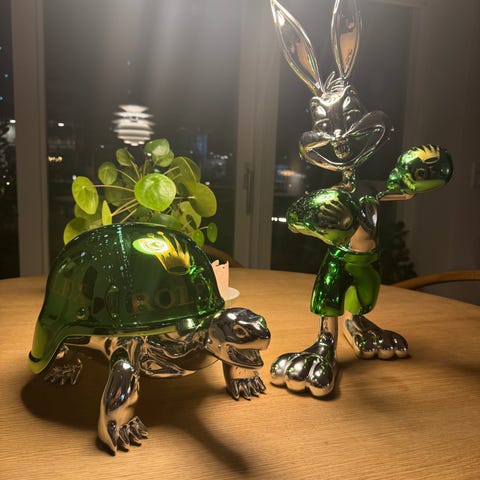 Sælger min Van Apple Rolex KO Bunny, som er 23/40 i verden. Den har desværre tidligere været tabt, og handskerne er ødelagt. Det giver figuren et lidt anderledes "udtryk", men når den står på en hylde eller i et skab, er det noget, man bemærker i en mindre grad. Derfor sælges den langt under markedsprisen.