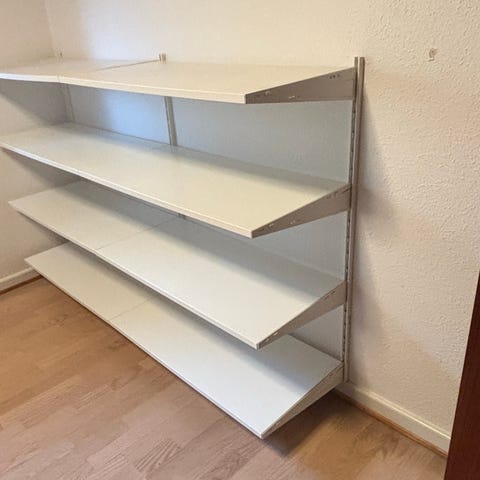 Smart hyldesystem fra Ikea. God til opbevaring. Fejler intet, men på billede 3 ses 3 hylder hvor den nederste hylde har en gul plamage som ikke kan fjernes, men den hylde kan jo placeres øverst så det ikke ses, fejler ellers intet.