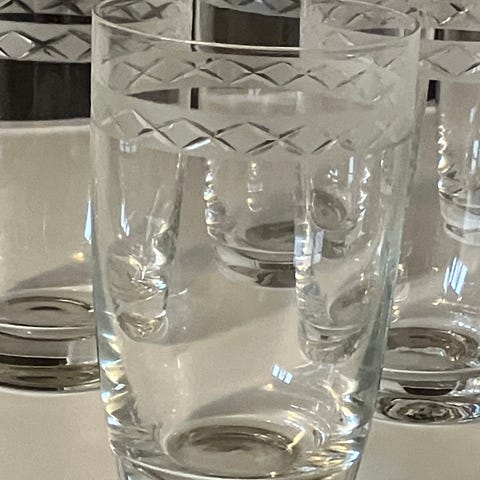 Jeg har flere glas i samme serie. De har tilhørt mine bedsteforældre og er formentlig købt i starten af 60’erne.