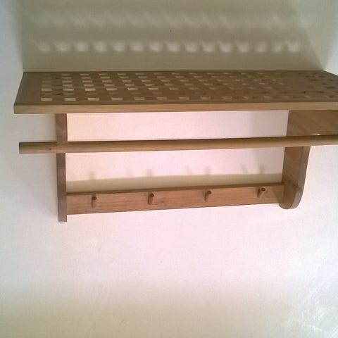 Knagerække/Hattehylde i teaktræ,med messing elokceret trådhylder.