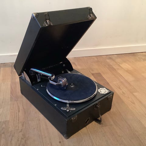 SABA Full Automatic System pladespiller med indbygget tonearm og beskyttelseslåg. Enheden er designet til automatisk afspilning af vinylplader og har kontrolknapper til hastighedsjustering. Farven er beige/hvid, og materialet er primært plast og metal.