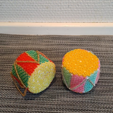 Med mulighed for ophæng, eller blot stående. Måler 6 cm i diameter, ca 4 cm høje.