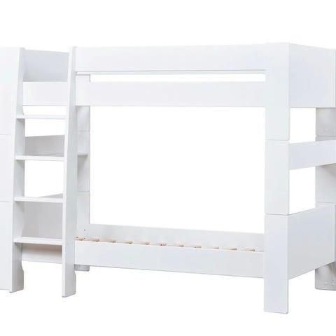Mindre børneseng nedenunder af mere spinkel kvalitet. Sat godt sammen med højsengen med skruer.