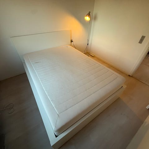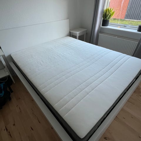 Billig Brun MALM seng fra IKEA i størrelsen 180x200 cm. Sengen har praktiske skuffer i siden til opbevaring og sælges inklusiv både madras og topmadras. Ny pris hos Ikea 3300kr uden madras.