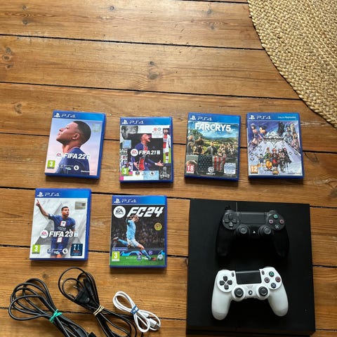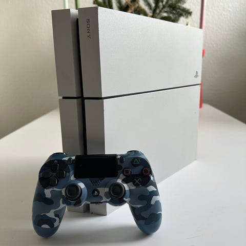 Sony PlayStation 4 konsol med DualShock-controller og headset