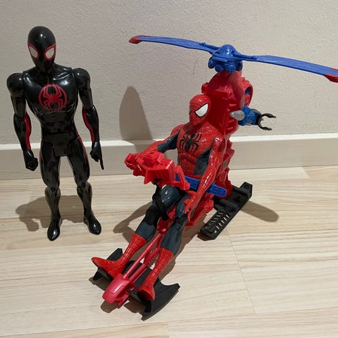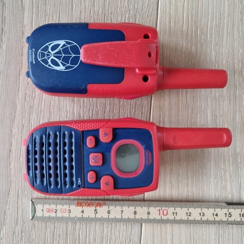 Man kan både bruge dem som walkie talkies, men der er også Spiderman lyde i.