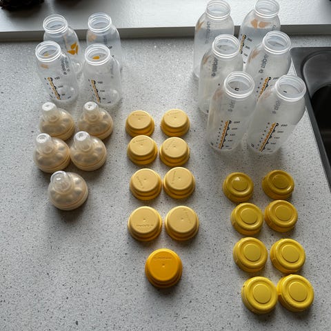8 stk. Medela flasker (150 ml): Perfekt størrelse til både opbevaring og madning.