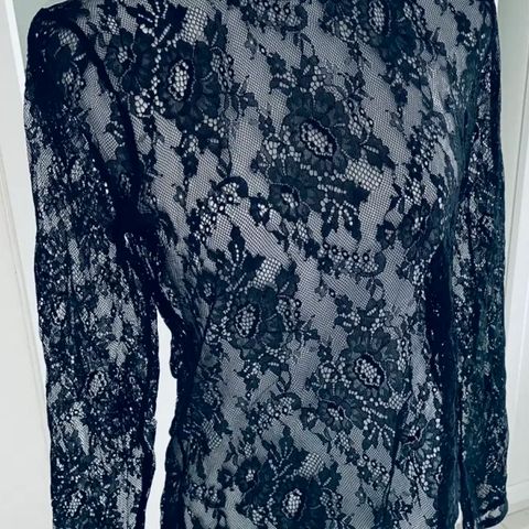 Smuk sort bluse med blonder.