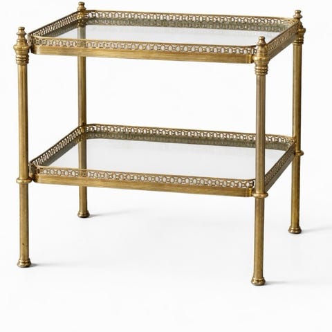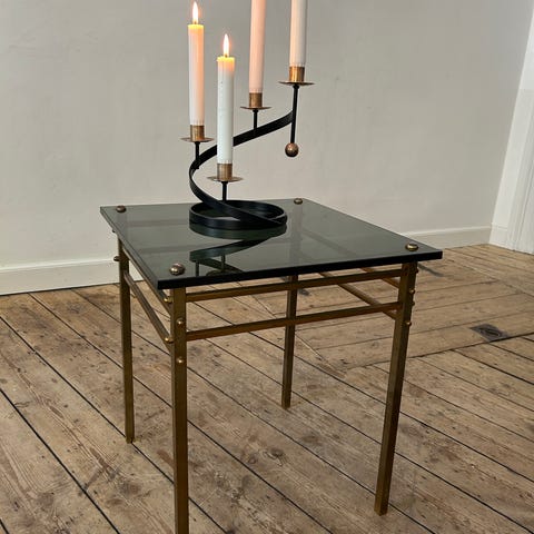 Antikt messingbord med tonet glas fra ca. midt 1900-tallet.