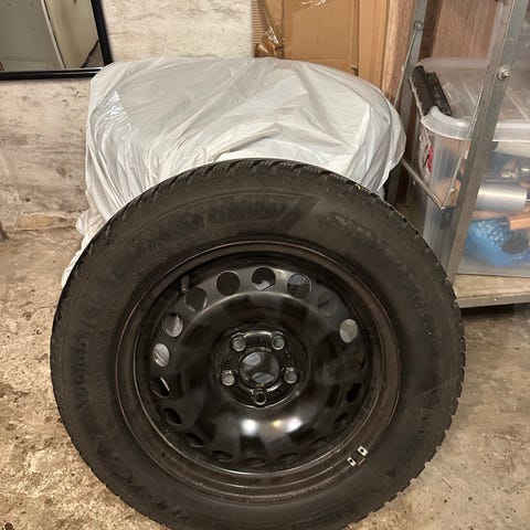 Fine Continental vinterdæk med 50% mønster tilbage. Ca. 2 år med alm kørsel 20.000km om året.