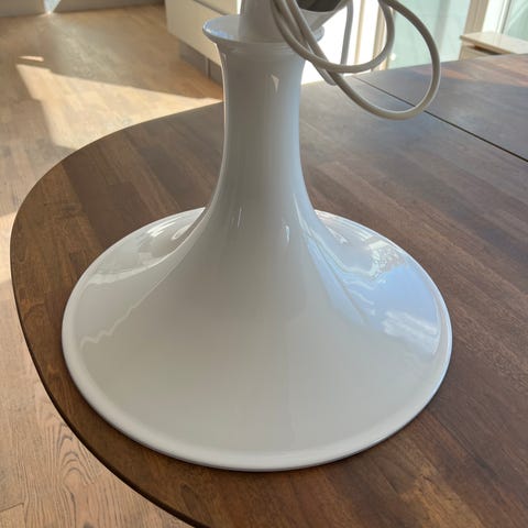 Pendel, Holmegård Kastrup?, Er ikke sikker på mærke. Rigtig fin glasskærm i hvid opalglas uden indsats. Mini flig i kanten foroven - ses jo ikke når indsatsen er på. Se sidste billede. Ellers helt intakt.