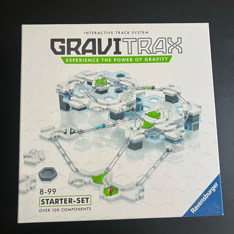 Gravitrax Starter-Sæt børne legetøj. Indeholder komponenter til at bygge en kuglebane med forskellige moduler. Egnet til børn fra 8 år og op. Materiale og farveinformation ikke angivet.