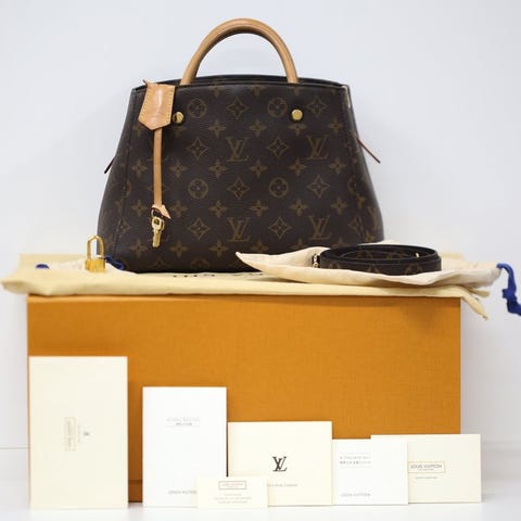Sælger min ægte Louis Vuitton Montaigne MM i Monogram coated canvas, med vachetta-læder og guldfarvet hardware.