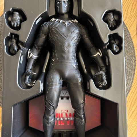 Sælger en Black Panther buste på ca. 36 cm. Flot udstillingsstykke med gode detaljer og udtryk. Passer perfekt til hylde, reol eller vitrineskab - især for Marvel/Black Panther fans eller som del af en samling.