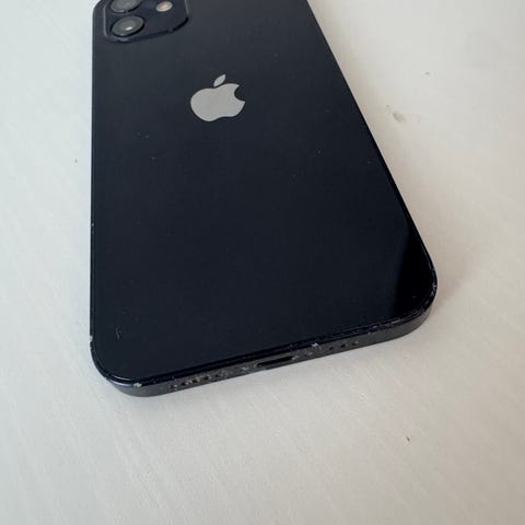 iPhone 12 i god stand. Skærmen har altid haft skærmbeskyttelse på, så der er ingen ridser på skærmen. Telefonen fungerer perfekt. Der er en lille ridse tæt på kameraet, som næsten ikke kan ses (se billede). Batteriets kapacitet er 84%.