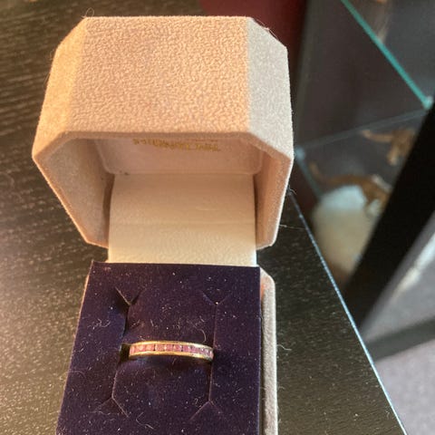 Smuk alliancering med 5 rubiner. Er blevet vurderet hos Aveny for at bekræfte ægtheden.