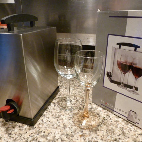 Incl original emballage. Ny pris 299. Haves 1-2 stk. Passer til brede 3L vin / juce bag-in-box.