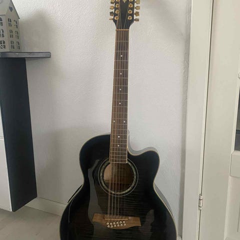 Sælger denne fine 12 strenget westen guitar. Den har fået helt nye strenge på. Den har en rigtig god lyd og er nem at lære at spille på. Den er med pickup og fejler intet. En perfekt løsning til at lære at spille på en 12 strenget guitar. Vil også gerne bytte til en 6 strenget western guitar med pickup og skal have en god lyd.