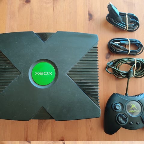Xbox m.Joypad og Masser Spil, med et originalt joypad. Stor HDD, DuoX Chip, UnleashX, Retro spil. Voldsomt mange spil og apps. Strøm+AV kabel medfølger,